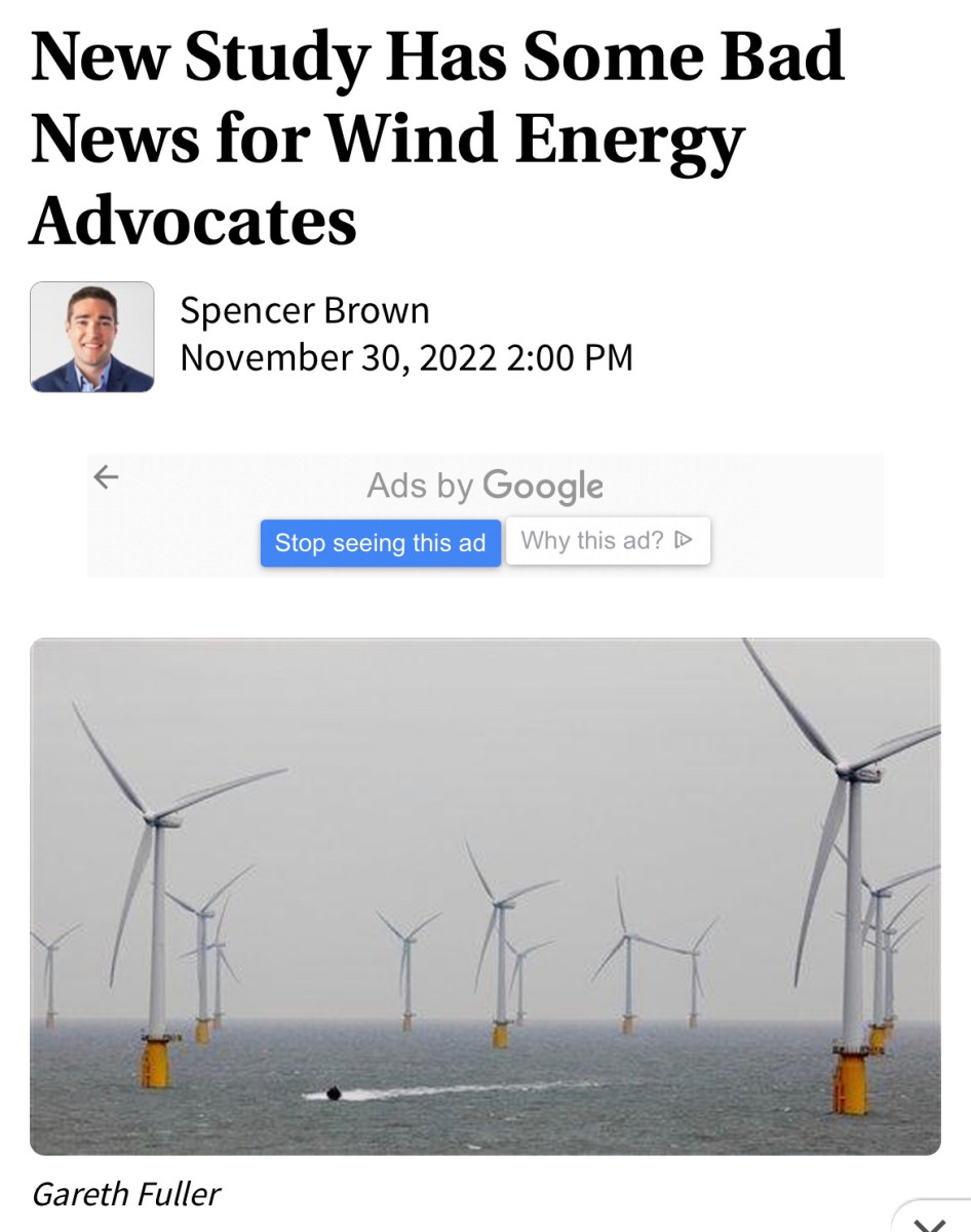 The researchers looked at one area and ecosystem in particular — the North Sea — where the world's largest offshore wind farm (OWF) opened earlier in 2022. Relying on modeling and simulations in order to see what the "systematic, large-scale, time-integrated response of the ocean to large OWF clusters" would be, the study's authors found evidence that offshore wind power generation, supposedly great for the planet actually introduced factors that negatively impact sea life.
