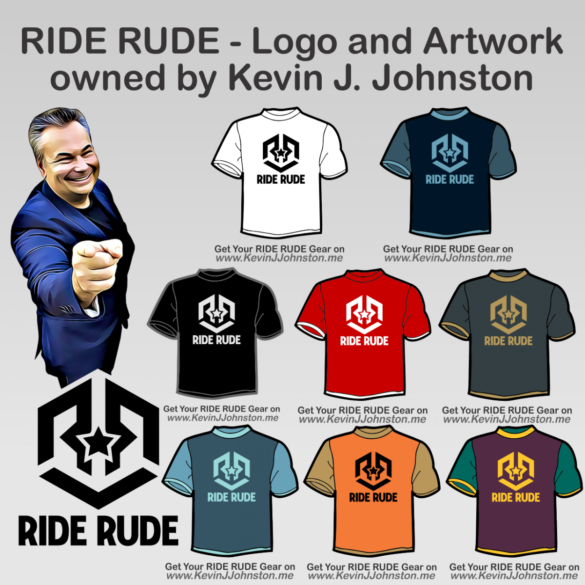 This is just a public record - The logo RIDE RUDE and all the affiliated merchandise that goes with it was designed by me, KEVIN J. JOHNSTON for Jericho Digos. Jericho Digos is Canada's most notorious con artist and has not paid for the artwork.