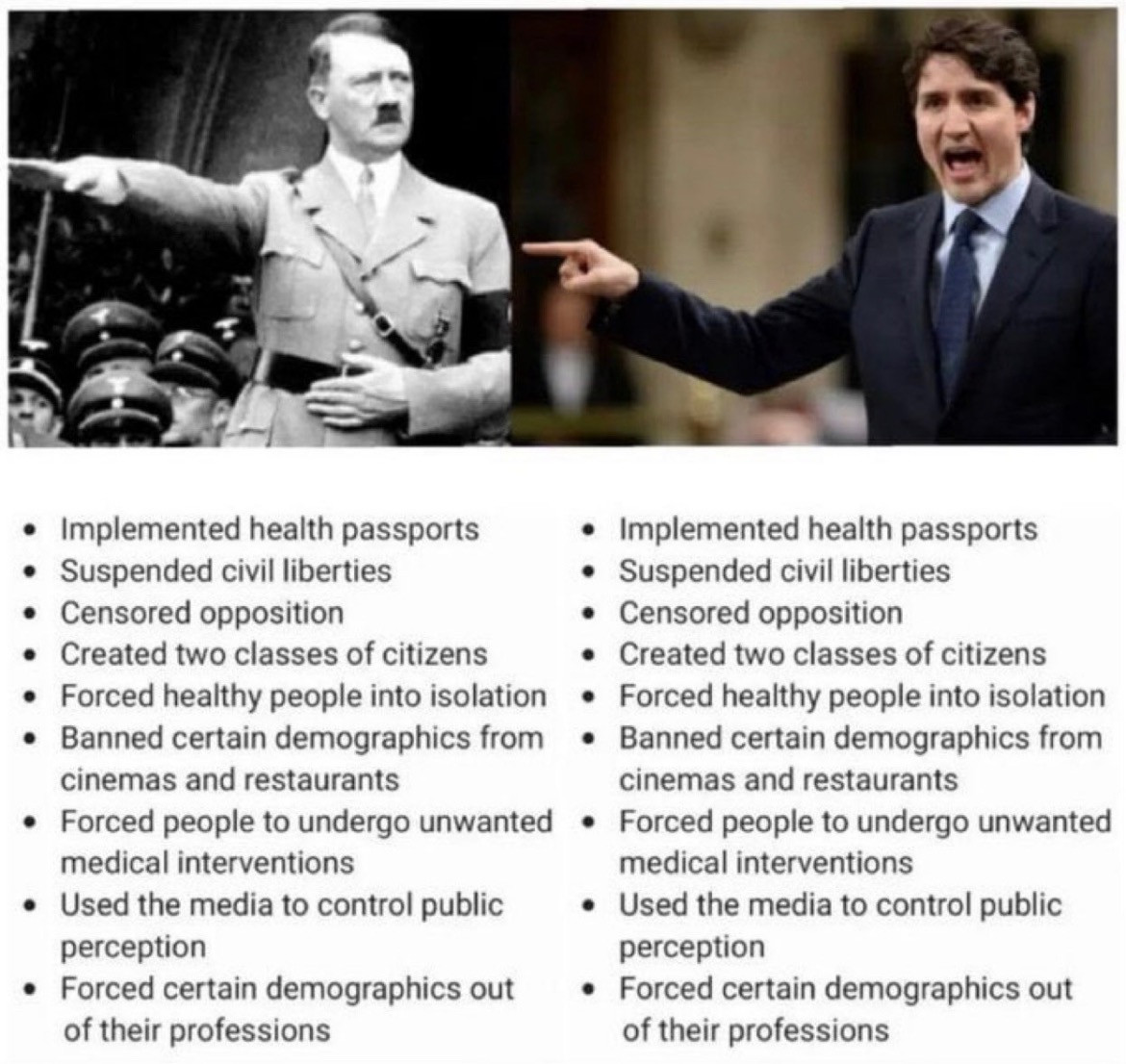 We have often said Trudeau, TODAY, is following the 1931 Nazi propaganda playbook to introduce Fascism and Dictatorship to Canadians. Canada is repeating history that no one wants to relive.